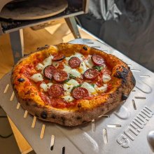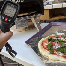 Been using this for about two months now and I've loved it since day 1! I make pizza every weekend now with friends! Turn it on and let it heat at max for about 15 minutes. Don't forget to turn on the rotating mechanism at this time! An IR thermometer gun will be handy if you want to dial it in, but I just use mine to make sure the temp is hot enough. Usually after 12-15 minutes the stone is reading around 850°+ I dust the included peel with coarse corn meal, don't go too overboard or it'll result in a burnt taste in the end! For my doughs I use either bread flour or 00 flour, hydration is usually around 65%. Dough balls are around 250-275g. When I put the pizza in, I turn the gas down to about 70% and it's done in about 60-70 seconds! Let cool for a minute, slice, and enjoy! Pictures are of a brisket pizza (75/25 tomatoes to bbq sauce and a mix of mozzarella and smoked provolone), basic pepperoni, and a pesto sauce with sliced Roma tomatoes.